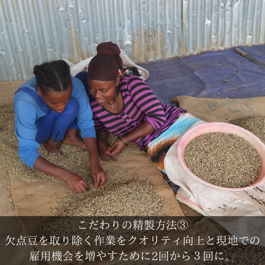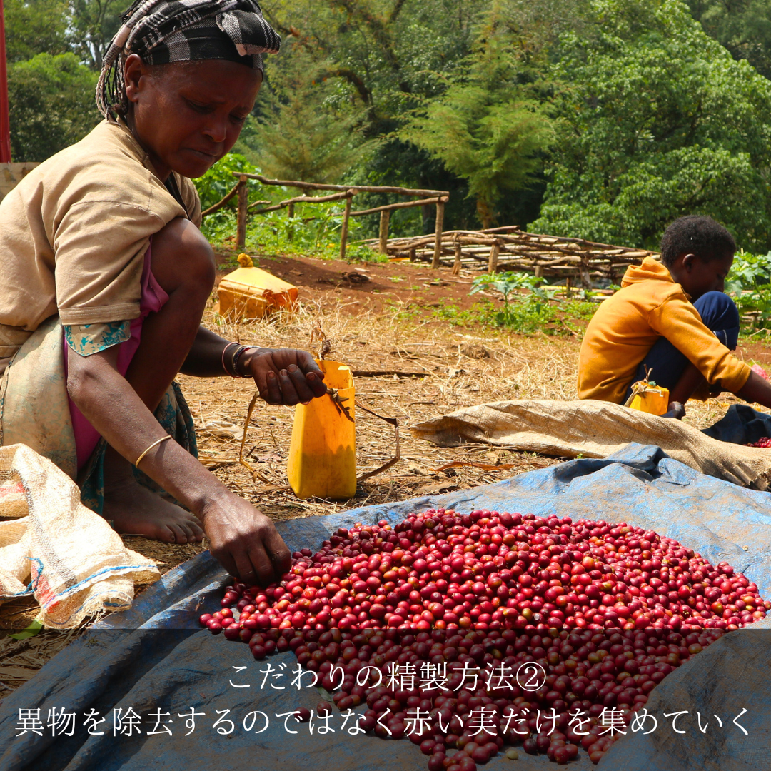 丁寧に精製された最高級のエチオピアナチュラルです。1ハゼ前の超浅煎りでも甘みとフルーティーな香りを楽しめる希少な豆です。次回クロップにも期待しています。