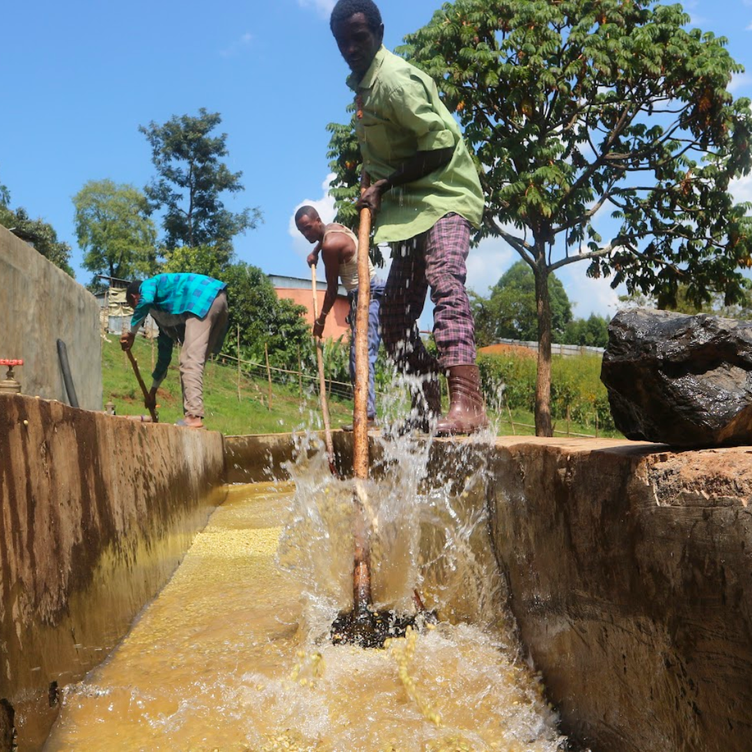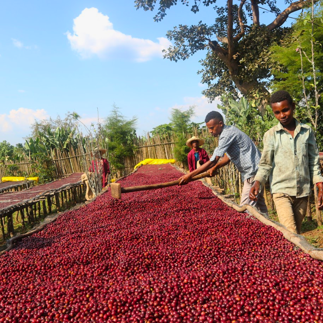 エチオピアの生産者のところへ行き、対面交渉。お互いが納得した取引。